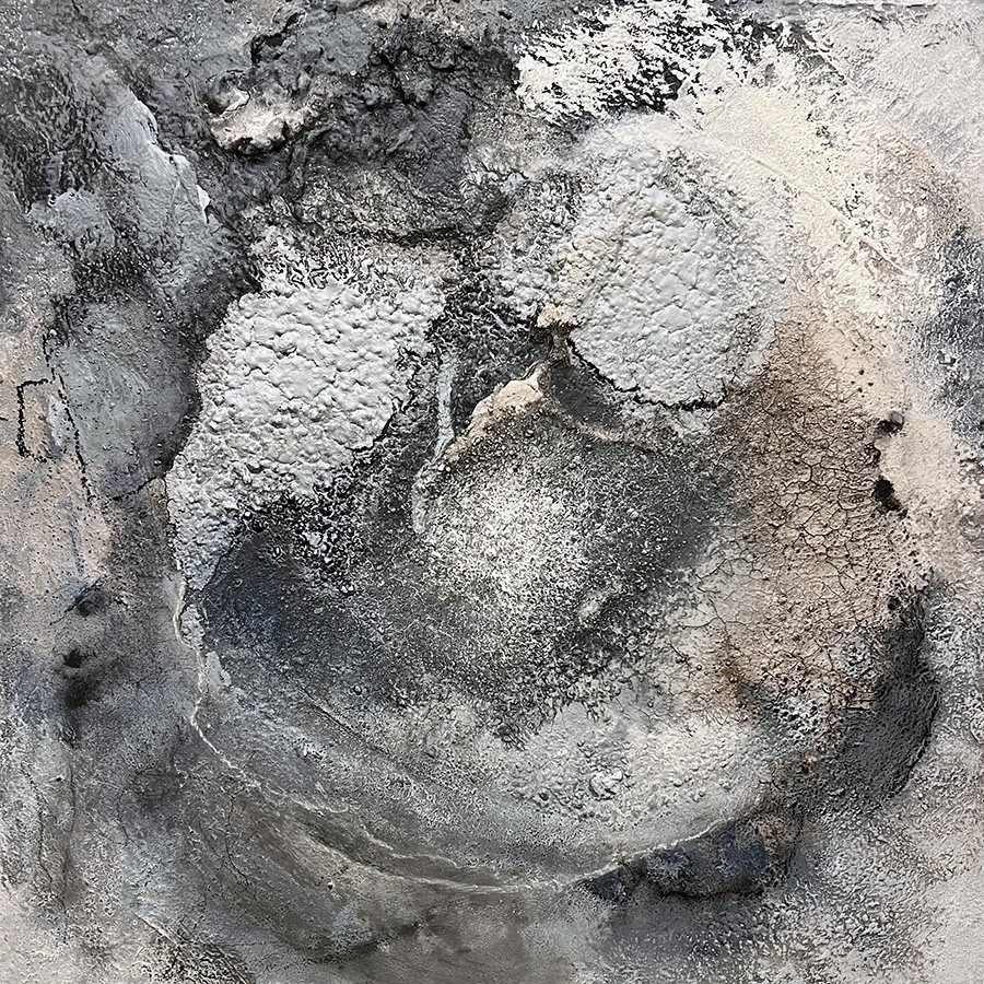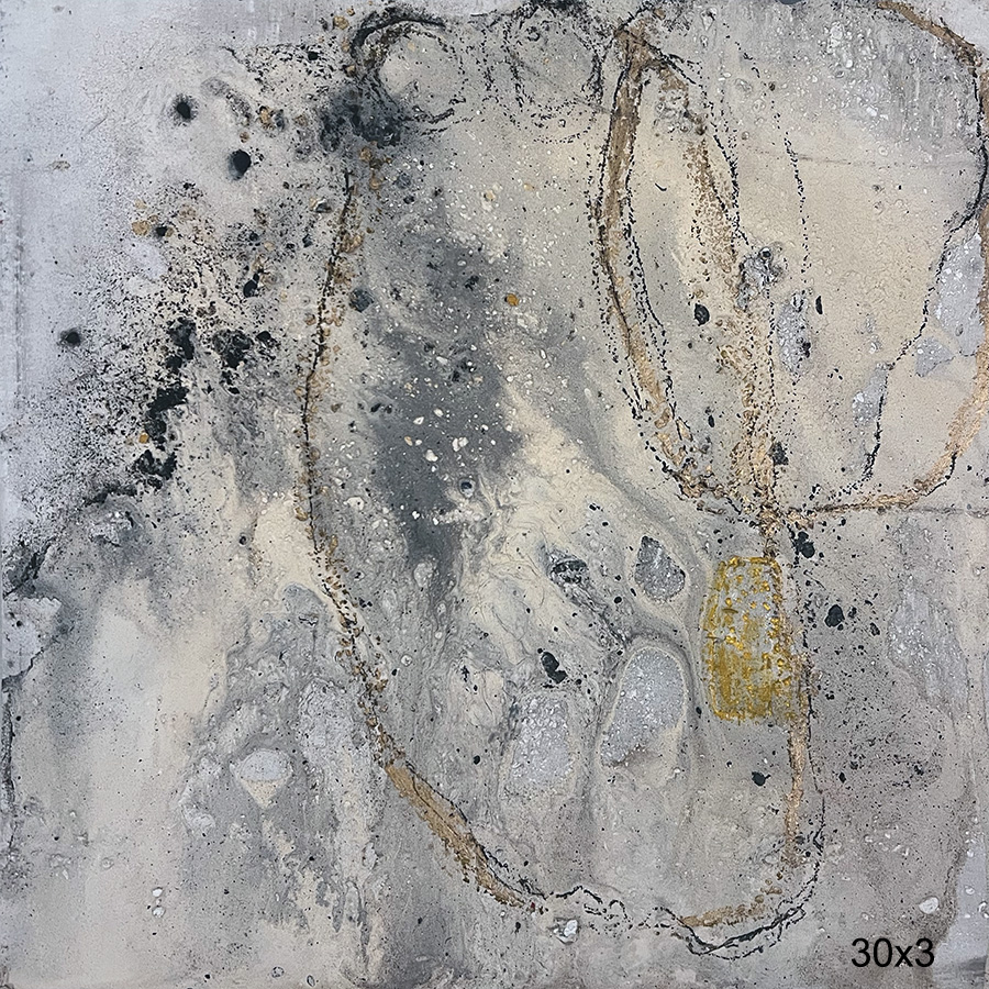 Meine Werke entstehen sprichwörtlich aus dem "Nichts" heraus. Vor einer weissen unberührten Leinwand zu stehen hat für mich etwas Andächtiges fast Meditatives. Mit Kohlestift schreibe ich ein paar Gedanken grosszügig auf das Bild. Der Auftakt zu einer kreativen Reise die oft wochenlang ja sogar Monate dauert kann beginnen. Ein Bild kann bis zu 20 Farbauflagen enthalten. Manchmal sind sie kräftig oft aber sehr lasierend und punktuell. Die vielen Erdtöne hole ich mir aus der Natur.